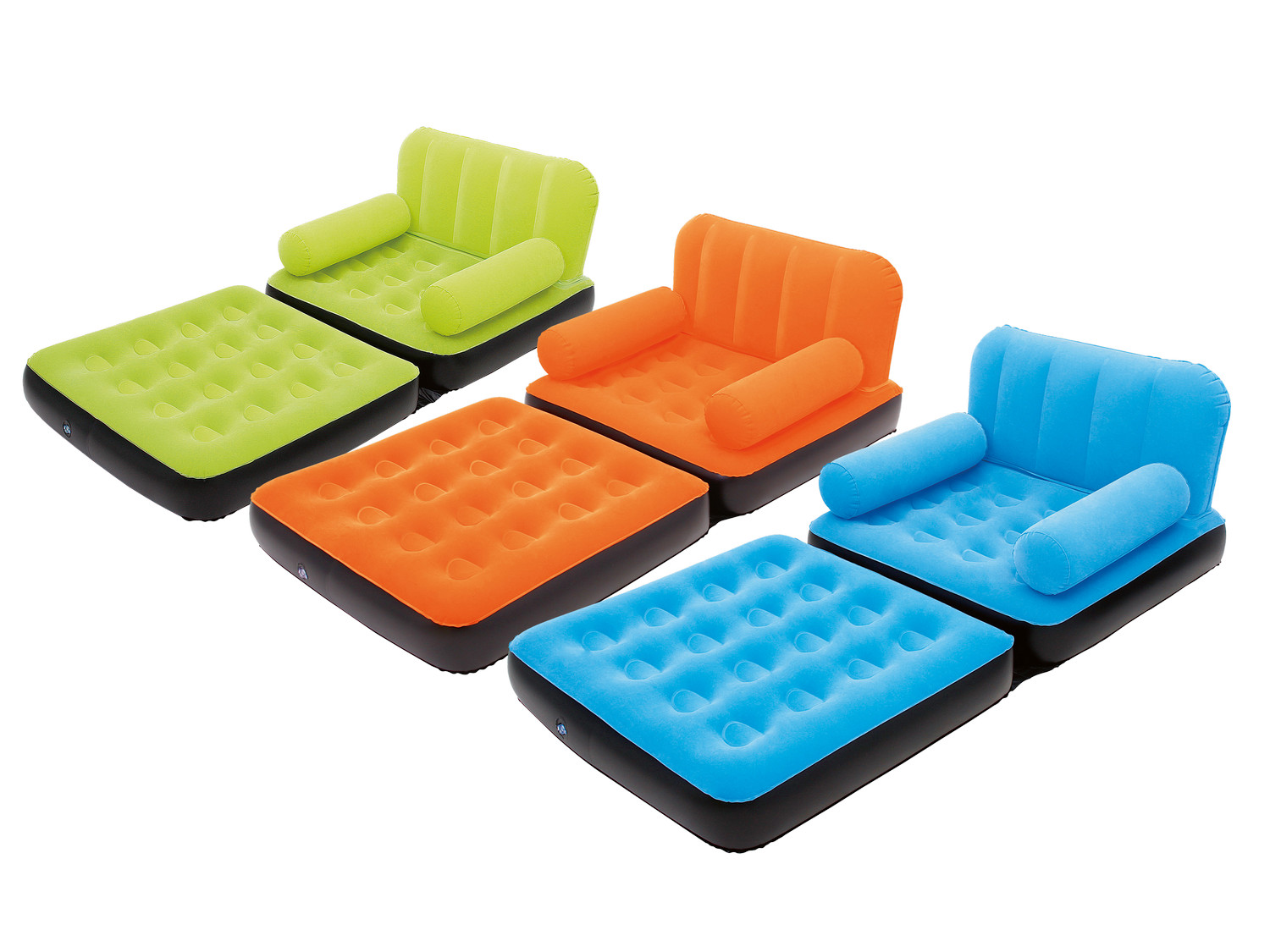 تشک بادی تاشو و چند کاره بست وی از جمله بهترین وسیله برای استراحت های مقطعی و همچنین تغییر دکوراسیون های داخلی که ساخته شده از جنس PVC با روکش مخمل از نوع کامفورت می باشد. این تشک چند کاره با داشتن ابعاد (طول: ۱۹۳ سانتی متر، عرض: ۹۴ سانتی متر، ارتفاع: ۲۳ سانتی متر) و تحمل وزن ۱۱۰ کیلوگرمی قابلیت تبدیل به کاناپه، مبل و تشک بادی را دارد. از سایر ویژگی های این کالا می توان به ضد تعرق و طبی بودن آن اشاره نمود.