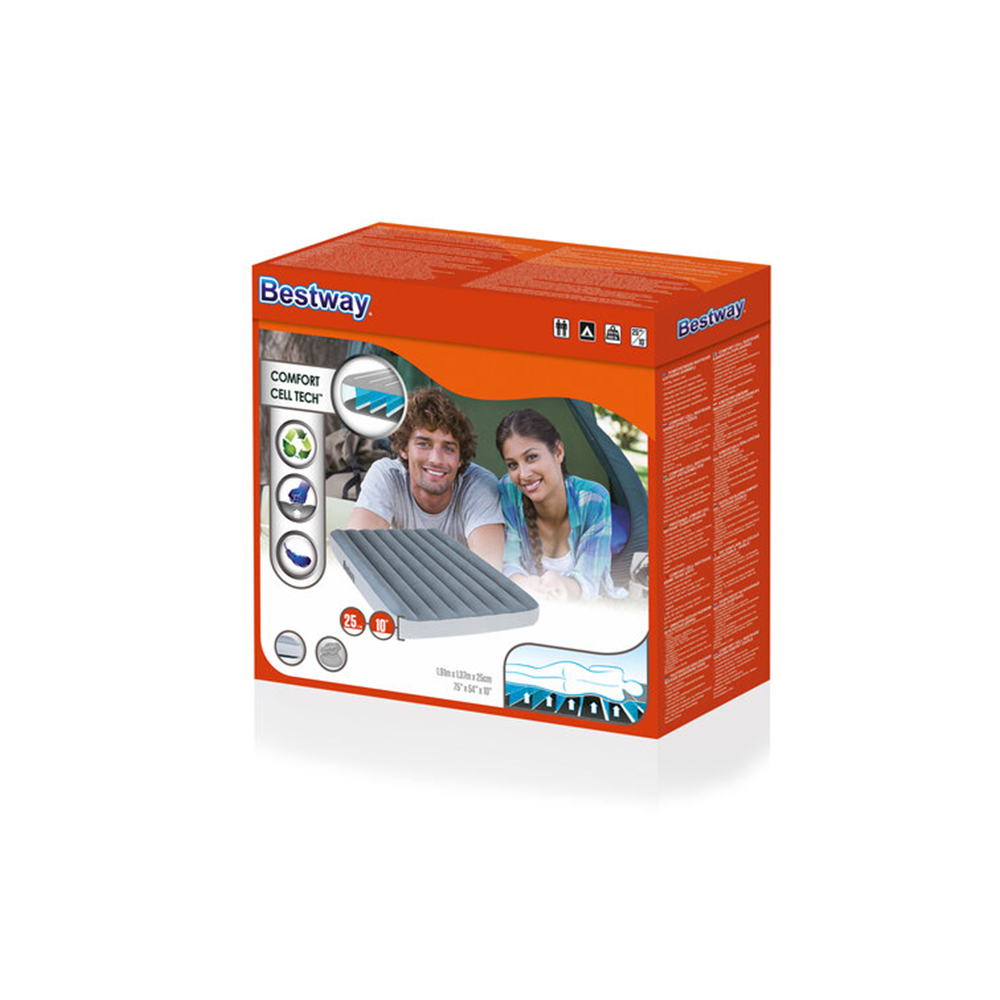 تشک بادی دو نفره بست وی در عرض 137 سانتی متر یکی دیگر از تشک های بادی ساده این شرکت در رنگ ملایم بوده که ساخته شده از جنس PVC با روکش مخمل در نشیمنگاه و طرح چرم در کناره ها و زیرین می باشد. تشکی که قسمت های کناری و زیرین آن در برابر آب مقاوم بوده و از نشیمنگاهی مواج با قابلیت جلوگیری از تعرق بالا بهره مند است. این تشک در واقع یکی از مقرون به صرفه ترین محصولات خواب و استراحت بست وی بوده که می تواند نه تنها برای منزل بلکه برای محل کار، سفر ها و همچنین استفاده در داخل انواع چادر های مسافرتی بسیار مناسب باشد. علاوه بر این داشتن وزن بسیار مناسب نیز خود می تواند در راحتی حمل این محصول موثر باشد. اما یک پمپ باد دستی در کنار این تشک قرار داده شده که می توان توسط آن در مدت زمان کوتاهی این کالا را راه اندازی نمود.