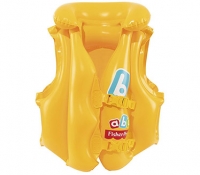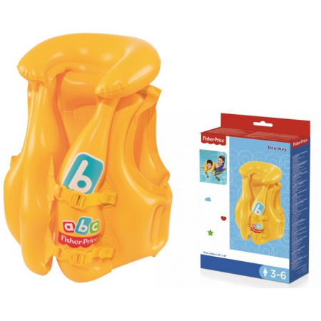 جلیقه شنا بادی زرد رنگ سری B از جمله جلیقه های شنای بادی تولید شده توسط شرکت بست وی با کیفیت بالا می باشد . این جلیقه ی شنا سری B می باشد به این معنی که کودک شما ابتدا باید از جلیقه های شنای سری A که دارای حلقه های شنای شورتی نیز می باشد استفاده کند و بعد به مرحله ی استفاده از این جلیقه برسد . رنگ این محصول زرد می باشد که حروف انگلیسی نیز بر روی آن بصورت طرح دار چاپ شده است . جنس این محصول وینیل می باشد که با ضخامت 0.25 میلی متری کیفیت قابل قبولی را برای جلیقه های شنا ی کودک دارد . وزن تقریبی این جلیقه 300 گرم می باشد که شامل 3 محفظه ی باد هست و می تواند کودک شما را به خوبی بر روی آب نگه دارد و در هنگام آسیب دیدن یکی از بخش های این جلیقه و خالی شدن باد آن سایر قسمت ها بدن کودک شما را بر روی آب نگه می دارد . این جلیقه ی شنا مناسب برای کودکان بین سنین 3 تا 6 سال می باشد . دوبند در جلوی این جلیقه وجود دارد که برای بسته شدن این جلیقه از آن استفاده می شود.